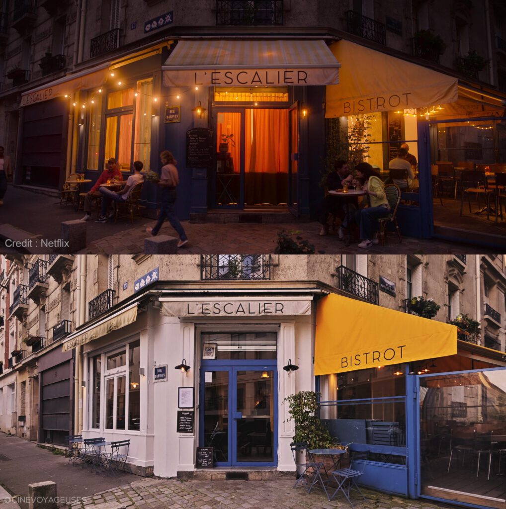 La scène a été tournée à L’Escalier, un restaurant situé sur la butte Montmartre. Discret et typique du quartier, l’établissement est connu pour son atmosphère conviviale, sa cuisine française traditionnelle biologique et ses vins naturels.