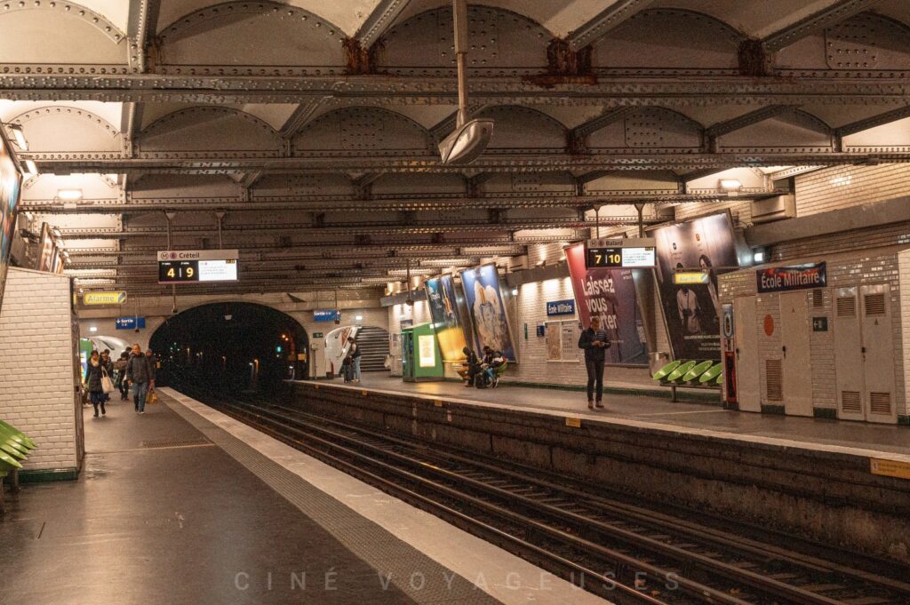 En réalité, l’intérieur de cette station a été tourné à la station École Militaire, sur la ligne 8 du métro parisien. Située dans le 7ᵉ arrondissement, la station se trouve à deux pas du Champ-de-Mars et de la Tour Eiffel. Dans les environs, on peut également rejoindre le musée Rodin en une quinzaine de minutes à pied, célèbre notamment pour abriter Le Penseur, l’une des sculptures les plus emblématiques de l’artiste.