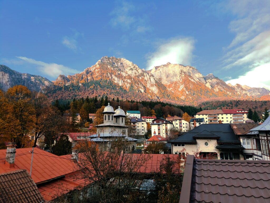 Située dans la vallée de Prahova, au cœur des Carpates, Bușteni est une petite ville de montagne connue pour ses paysages incroyables et ses monuments historiques. Elle abrite notamment le célèbre Château Cantacuzino, devenu l’un des lieux de tournage les plus connus de la Roumanie. Il a servi de décor pour la Nevermore Academy dans la série Wednesday sur Netflix, ce qui a attiré l’attention des fans du monde entier.