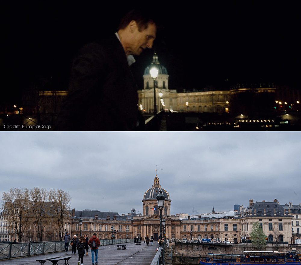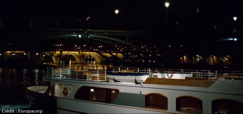 Mortellement blessé, Saint-Clair finit par révéler à Bryan que Kim a été emmenée sur un yacht qui quitte Paris par la Seine. Sans perdre une seconde, Bryan se lance à leur poursuite et saute depuis un pont directement sur le bateau mouche des trafiquants. La scène est très brève dans le film Taken, mais elle se déroule sur l’un des ponts les plus célèbre de la capitale : le Pont des Arts.