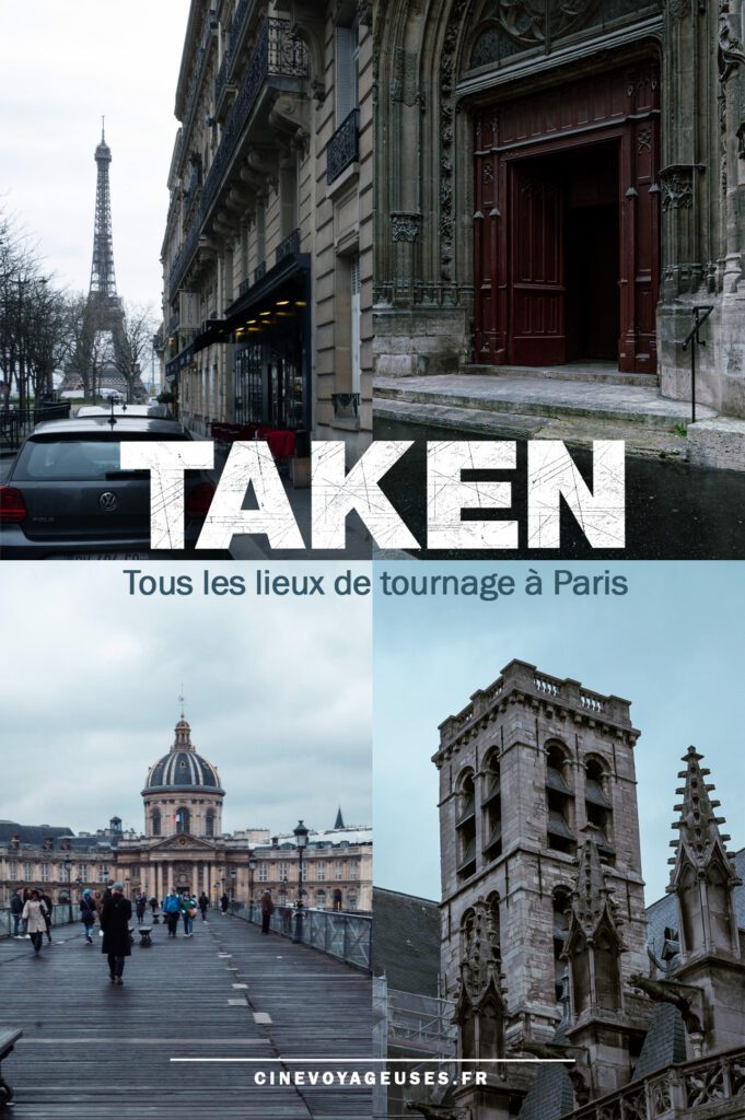 Dans Taken, de nombreuses scènes d’action et de poursuite ont également été tournées dans différents quartiers de la capitale. Ces lieux apparaissent parfois seulement quelques secondes à l’écran. On peut ainsi apercevoir plusieurs rues, quais et ponts lors des séquences de filature ou de déplacement de Bryan à travers la ville de Paris :