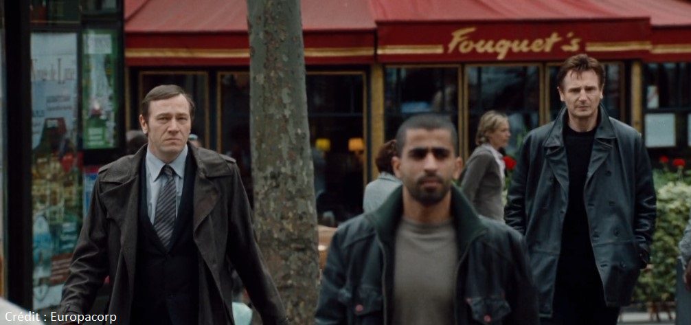 La scène que l’ont aperçoit au milieu du film Taken a été tournée sur l’avenue des Champs-Élysées devant le mythique restaurant Fouquet’s Paris, une institution parisienne ouverte depuis 1899. Situé au sommet des Champs-Élysées, ce restaurant est intimement lié au cinéma français et accueille chaque année les célébrités lors des César.