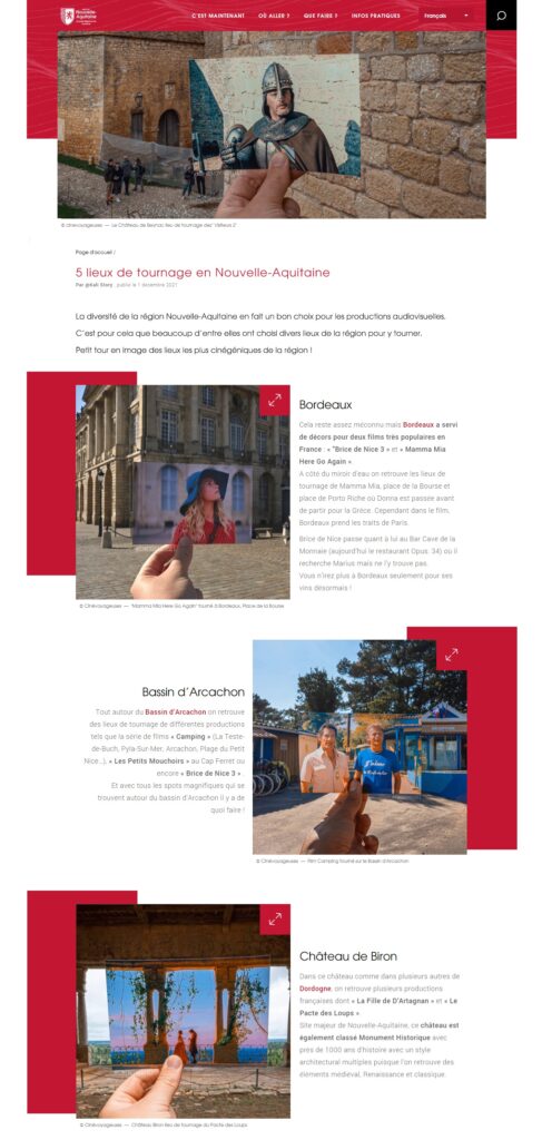 Nous réalisons des photos et des vidéos promotionnelles mettant en avant les aspects cinématographiques de votre destination. Ce contenu peut être utilisé sur vos plateformes de communication pour attirer un public passionné par le cinéma et les voyages.