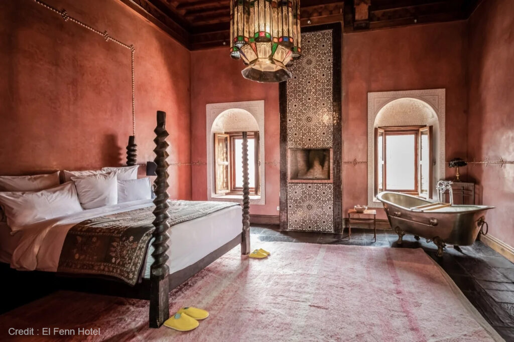 El Fenn, c’est bien plus qu’un simple hôtel, c’est une oasis de charme en plein cœur de la Médina de Marrakech. Avec ses patios verdoyants, ses bassins, son rooftop avec vue sur la Koutoubia et ses suites à la déco arty ultra-soignée, ce boutique-hôtel allie luxe discret et ambiance bohème. Un vrai décor de cinéma… qu’on peut vivre en vrai !