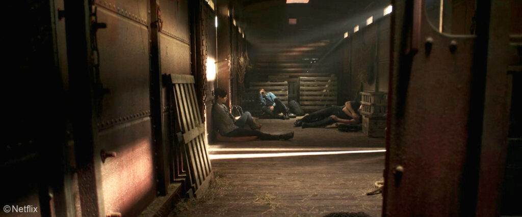 Les immortels, à bord d’un train, rêvent tous en même temps de l’éveil de Nile en tant que nouvelle recrue. On ne sait pas si cette séquence a été tournée au Maroc ou entièrement en studio. Mais si le tournage a bien eu lieu sur place, alors la ligne de chemin de fer entre Tamansourt et Kettara, avec son cadre isolé et désertique, pourrait correspondre. Ce n’est qu’une supposition, mais le décor visuel colle bien avec l’ambiance du film.