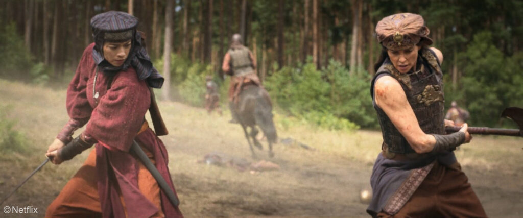 La scène de bataille où l’on voit Andy et Quynh à cheval, combattant côte à côte, a été tournée dans Bourne Wood, une forêt du Surrey très prisée pour le cinéma. Ses clairières ouvertes, ses chemins sinueux et ses zones boisées offrent un décor parfait pour les scènes d’action ou de fantasy. Ce site est un lieu de tournage réputé pour les productions en Angleterre. On peut citer quelques productions comme Gladiator, Thor : Le Monde des Ténèbres, Captain America : First Avenger, Avengers : L’Ère d’Ultron, Wonder Woman… et bien d’autres y ont planté leurs caméras.