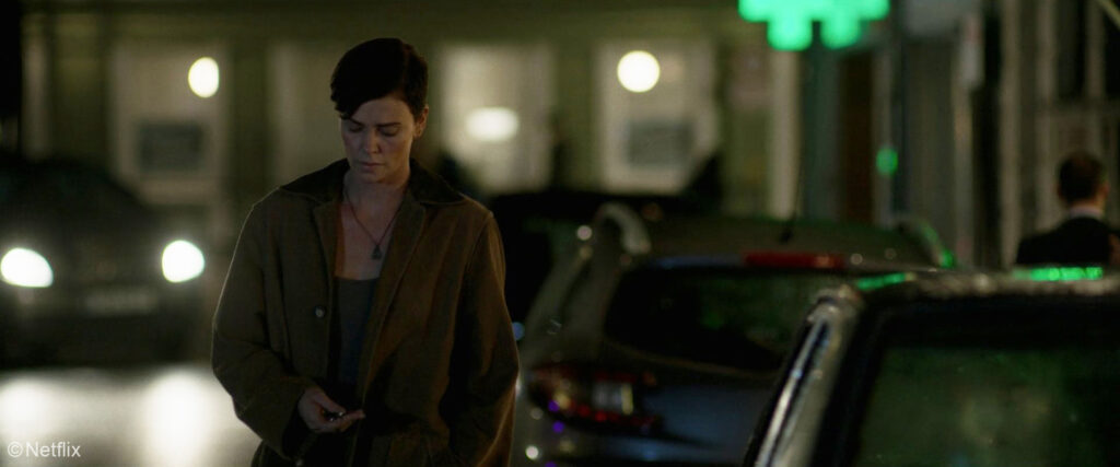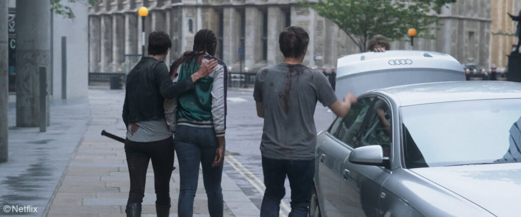 Lorsqu’Andy découvre qu’elle a perdu son immortalité, elle se rend dans une pharmacie présentée comme française à l’écran. Mais en réalité, la rue où Andromache rejoint sa voiture à pied se trouve… en Angleterre.