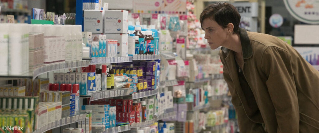Cette scène a été tournée à Trio Pharmacy dans le Surrey. Depuis le tournage, l’intérieur de la pharmacie est resté fidèle à ce que l’on voit à l’écran dans The Old Guard.
