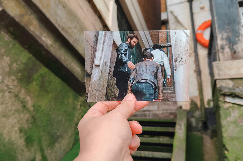 Cette séquence a été tournée au Prospect of Whitby, un pub historique situé sur les rives de la Tamise à St Katharine’s & Wapping, dans le quartier de Wapping à Londres. Le choix du lieu n’est pas anodin. Fondé en 1520, le Prospect of Whitby est l’un des plus anciens pubs de la capitale. Difficile de ne pas imaginer que ces immortels aient pu y passer à de nombreuses reprises au fil des siècles, comme un point de repère sur lequel ils reviennent encore et encore, malgré le temps qui passe.